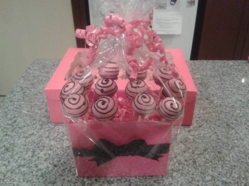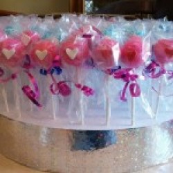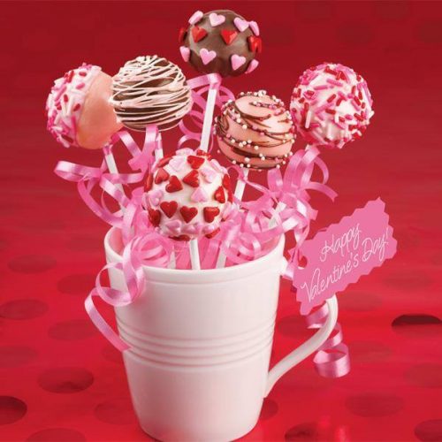 CLASSIC CAKE POPS-Basic chocolate or vanilla cake and frosting. Dipped in your choice of chocolate candy coating color topped with rainbow sprinkles (or your color of choice).
